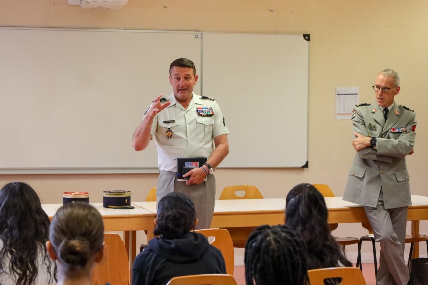 Deux gradés de l’armée en uniformes dans les couloirs du collège le Village à Trappes. La scène a dû en étonner plus d’un. Sauf, peut-être, les élèves de troisième D. Le 10 septembre, ils sont entrés officiellement dans le dispositif des classes de défense. Ce dernier permet de mettre en lien une unité militaire et des jeunes. Et bien que ce programme existe depuis 2005, c’est la toute première fois que la DSNJ (la direction du service national et de la jeunesse) à l’origine des classes de défense, à l’échelle nationale, marraine elle-même une classe. Le colonel Stéphane Zugetta, sous-directeur des politique jeunesse du ministère des armées, a tenu à signer lui-même la convention. D’emblée, il tranquillise les élèves.